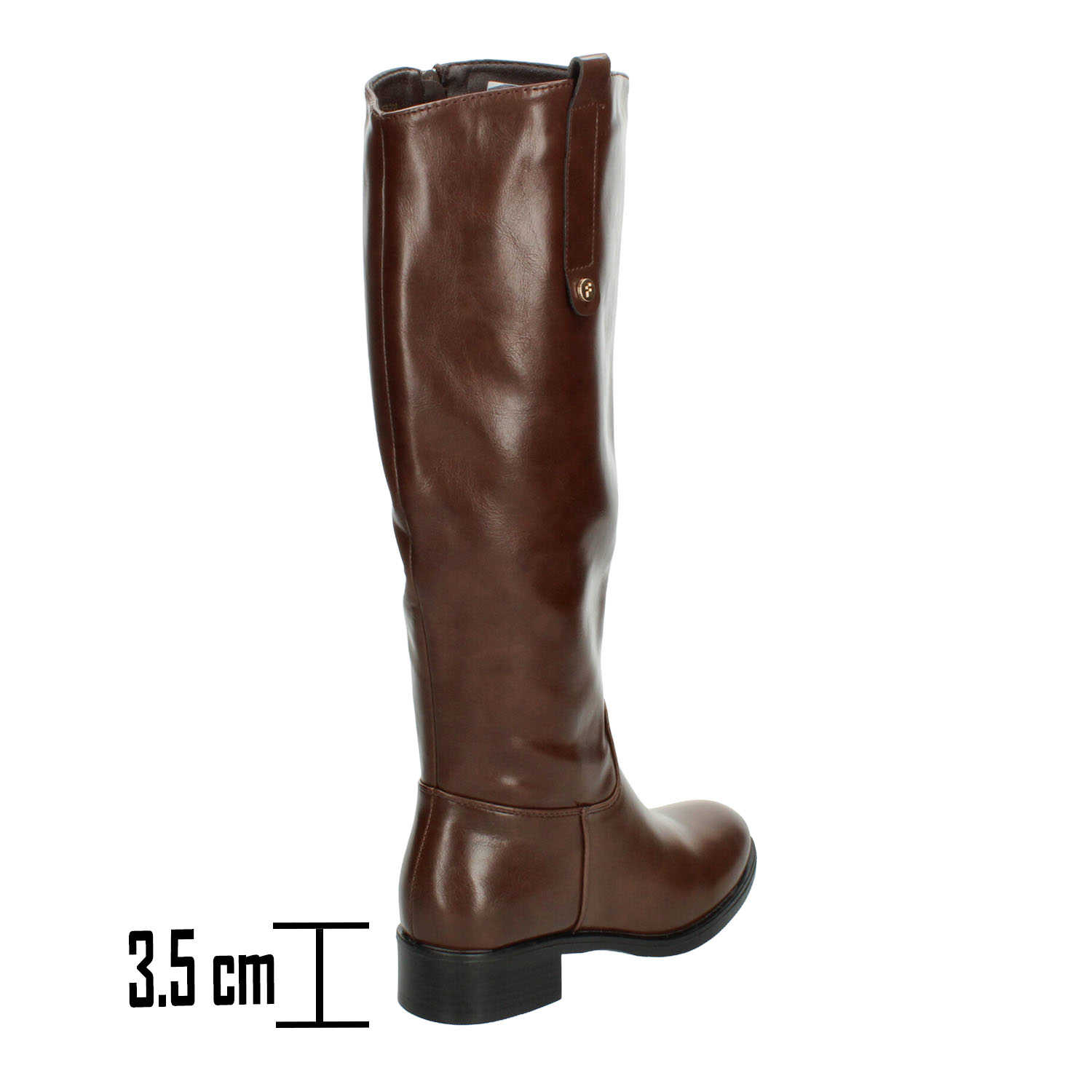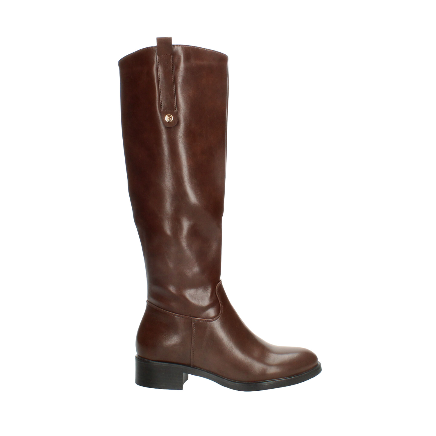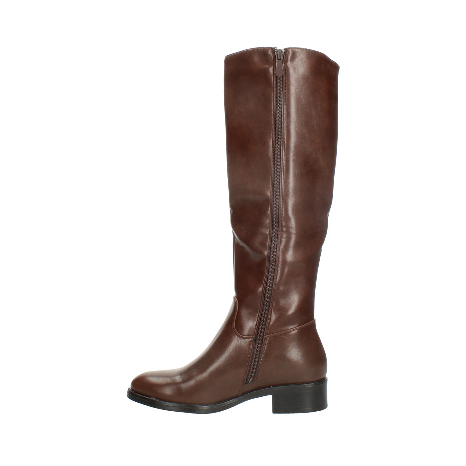 Bota larga para mujer en elegante color café, ideal para elevar tus looks de temporada con un estilo clásico y sofisticado. Está elaborada en material sintetico de acabado liso que aporta durabilidad y distinción. Su diseño de caña alta con detalle lateral decorativo añade un toque moderno sin perder versatilidad, mientras que el tacón bajo cuadrado brinda estabilidad y comodidad en cada paso. Perfecta para combinar con jeans ajustados, vestidos o faldas, esta bota se convierte en una pieza esencial para tu guardarropa. Ideal para lucir en salidas casuales o eventos formales con un estilo impecable.