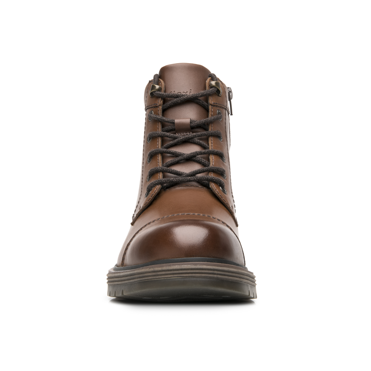 Bota casual para hombre en color café, perfecta para quienes buscan estilo y comodidad en un solo diseño. Elaborada con materiales de alta calidad y acabados tipo piel, cuenta con agujetas al frente que aseguran un ajuste firme y personalizado. Su suela antiderrapante ofrece excelente tracción, mientras que la plantilla acolchada brinda confort durante todo el día. Ideal para combinar con jeans o pantalones de vestir, esta bota aporta un toque moderno y sofisticado a cualquier look casual o semiformal.