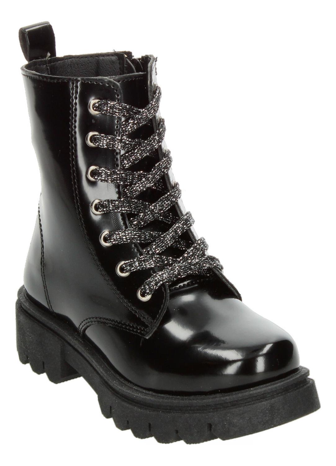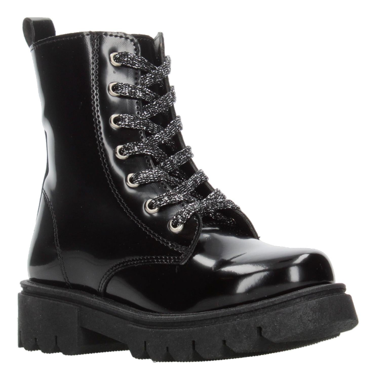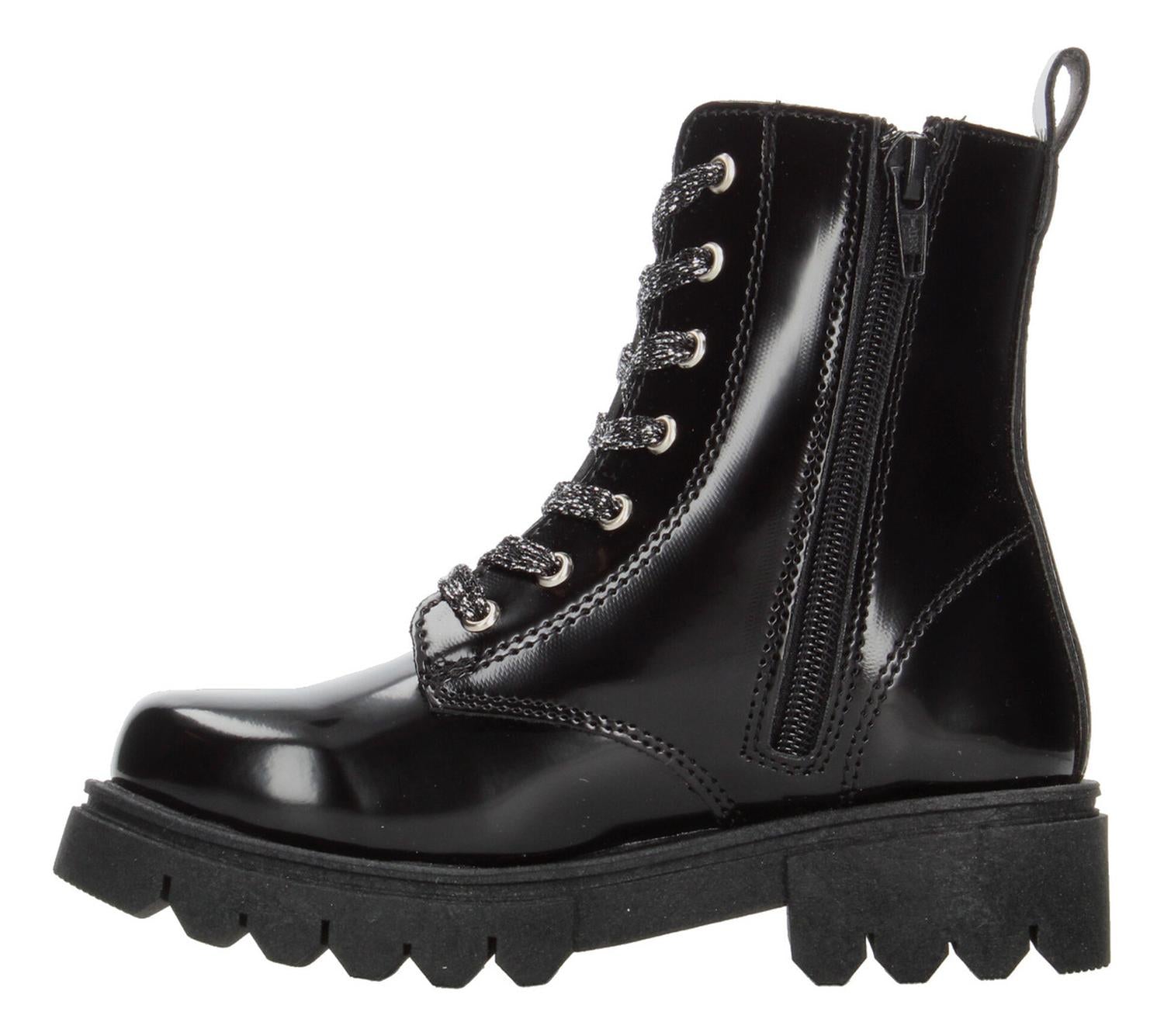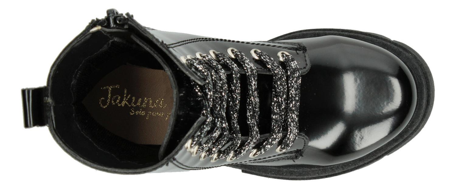 Haz que cada paso de tu pequeña sea especial con esta elegante bota para niña. Su color negro tipo charol ofrece un estilo sofisticado y versátil, ideal para combinar con cualquier outfit. Equipada con ajuste de cintas y cierre de zipper, proporciona seguridad y facilidad al ponérselas. Las cintas con brillantes detalles añaden un toque de glamour, haciendo que tu hija se sienta única y radiante. Perfecta para cualquier ocasión, esta bota no solo asegura comodidad, sino también un estilo deslumbrante que encantará a tu pequeña.