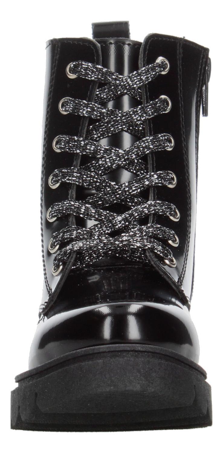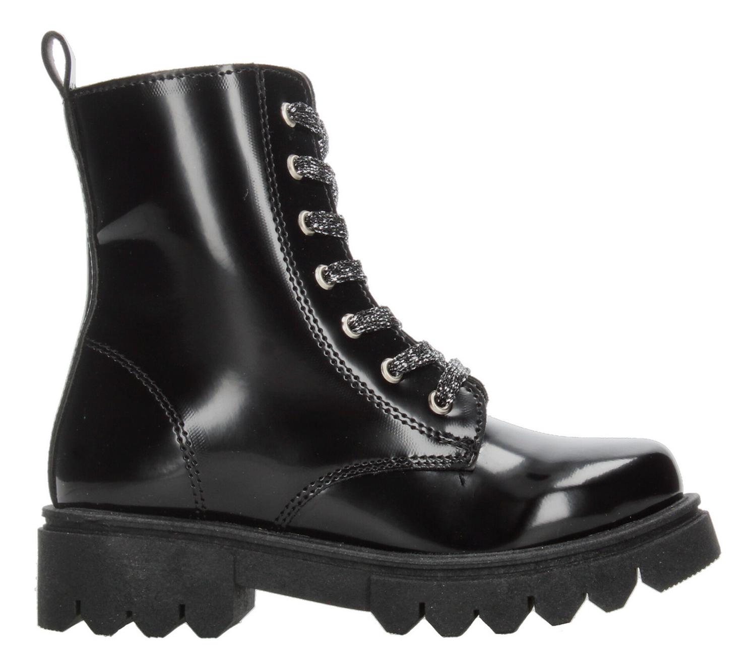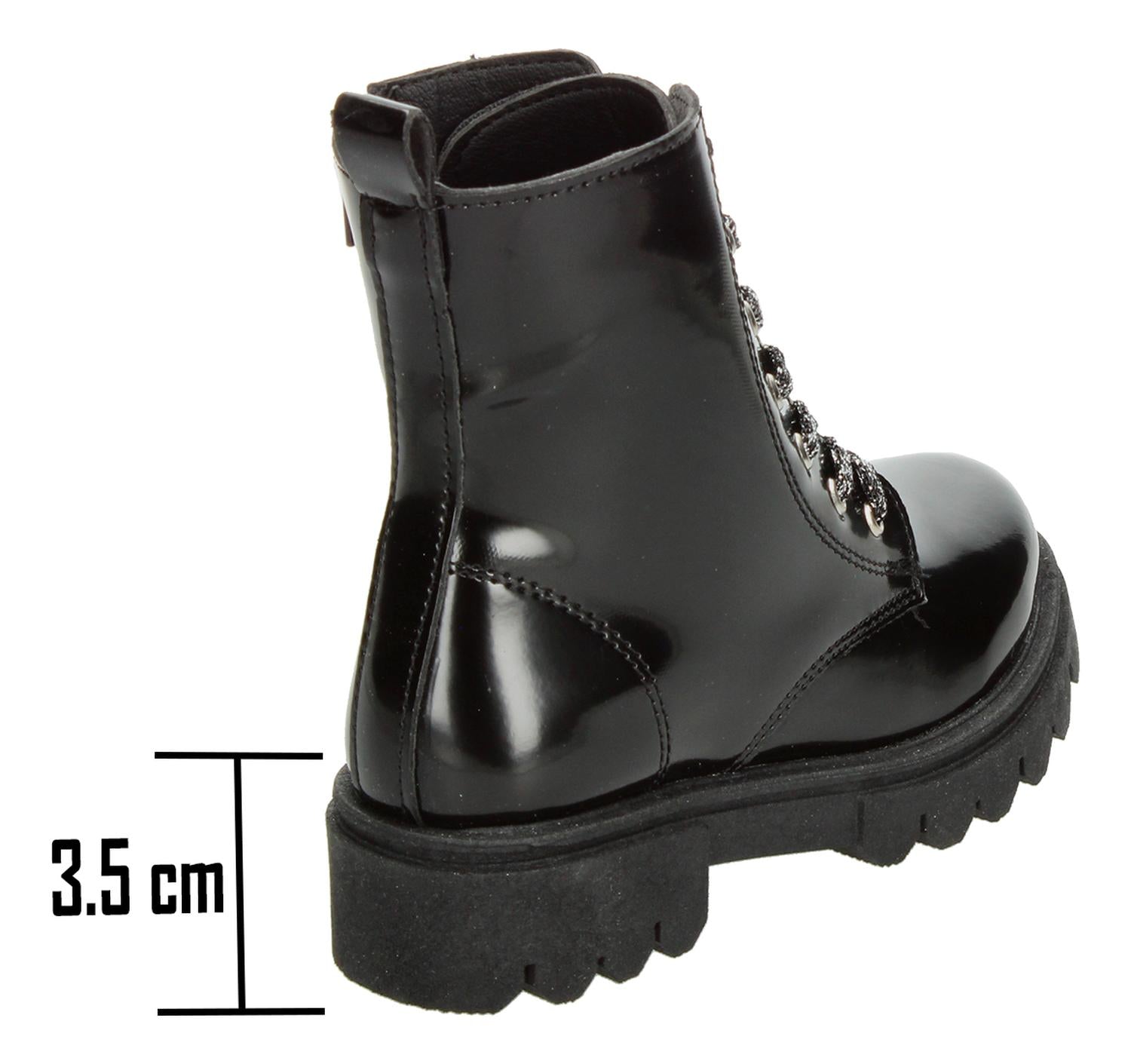 Haz que cada paso de tu pequeña sea especial con esta elegante bota para niña. Su color negro tipo charol ofrece un estilo sofisticado y versátil, ideal para combinar con cualquier outfit. Equipada con ajuste de cintas y cierre de zipper, proporciona seguridad y facilidad al ponérselas. Las cintas con brillantes detalles añaden un toque de glamour, haciendo que tu hija se sienta única y radiante. Perfecta para cualquier ocasión, esta bota no solo asegura comodidad, sino también un estilo deslumbrante que encantará a tu pequeña.