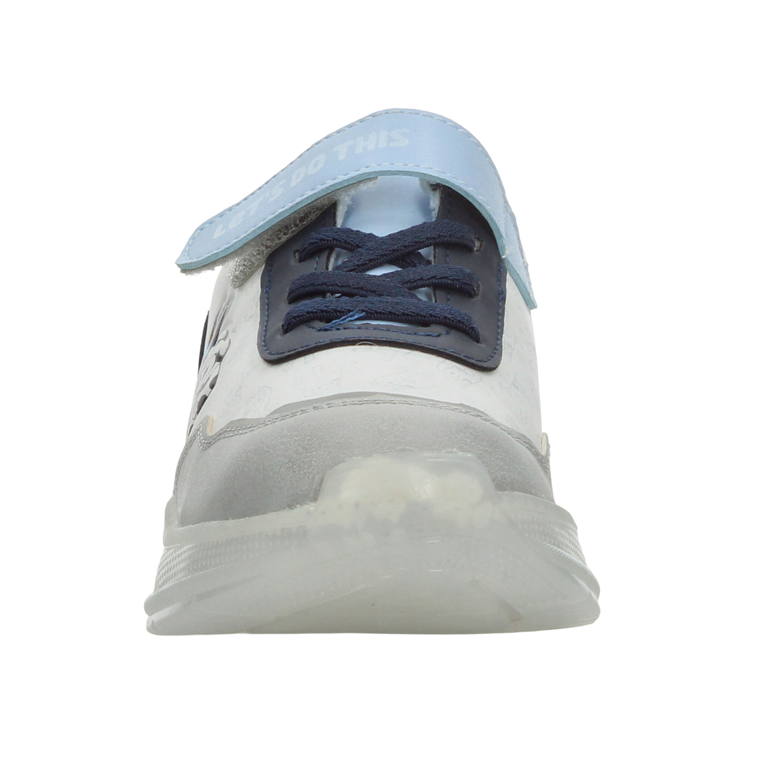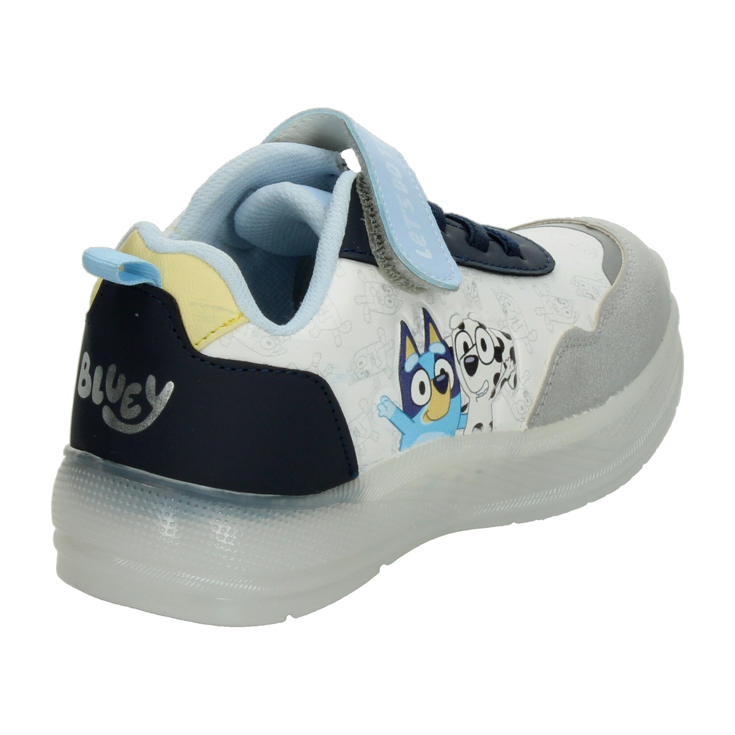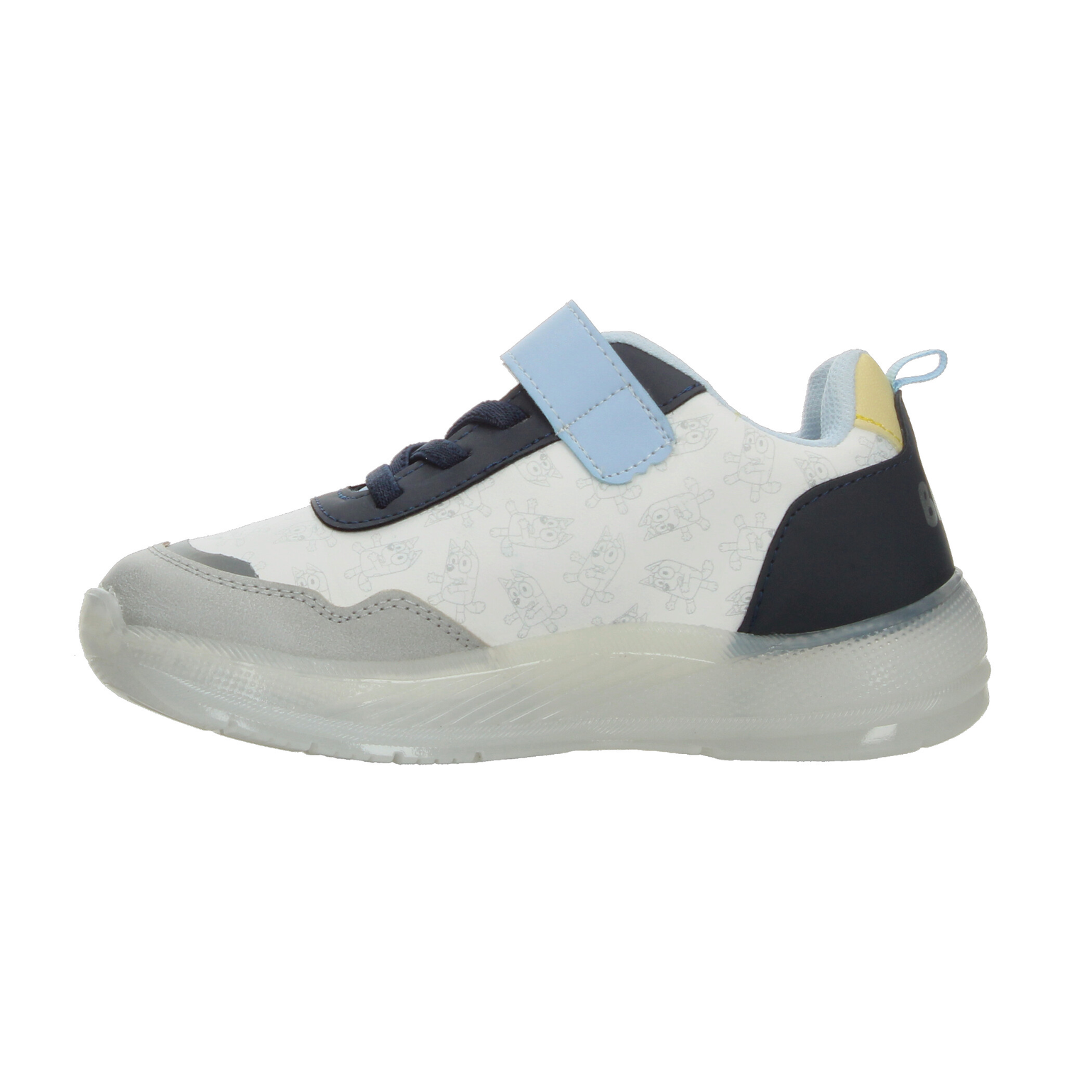 Estos tenis de Bluey para niño son perfectos para acompañar cada una de sus aventuras. Su diseño en color blanco con detalles en azul y gris incluye a los divertidos personajes de la serie, aportando un toque alegre y lleno de energía. La tira de velcro con la frase “LET’S DO THIS” facilita el ajuste, mientras que la combinación con agujetas brinda mayor seguridad. La suela translúcida incorpora luces LED multicolor que se activan al caminar, haciendo cada paso más emocionante. Fabricados con materiales resistentes y de fácil limpieza, ofrecen comodidad y durabilidad para el uso diario. Ideales para quienes buscan estilo, diversión y practicidad en un solo calzado.