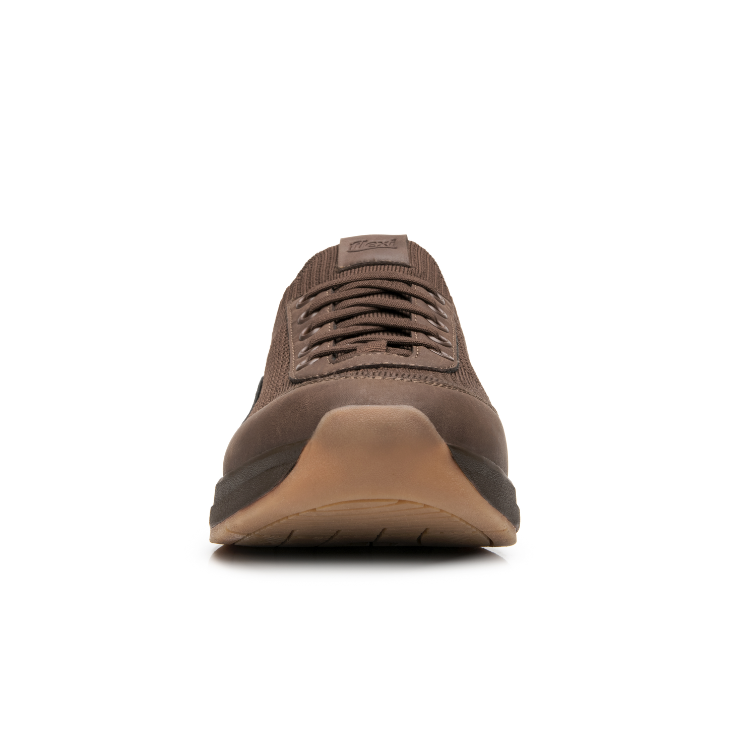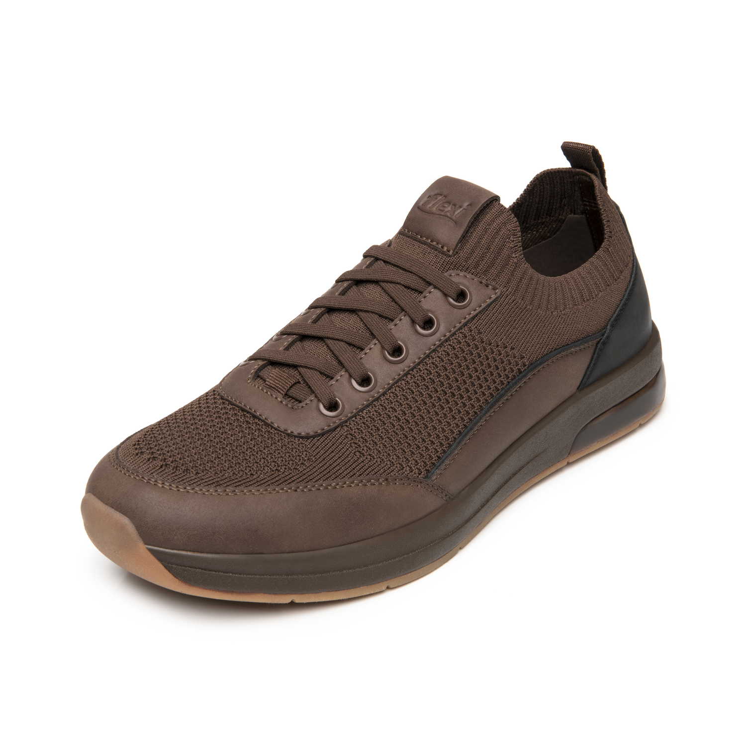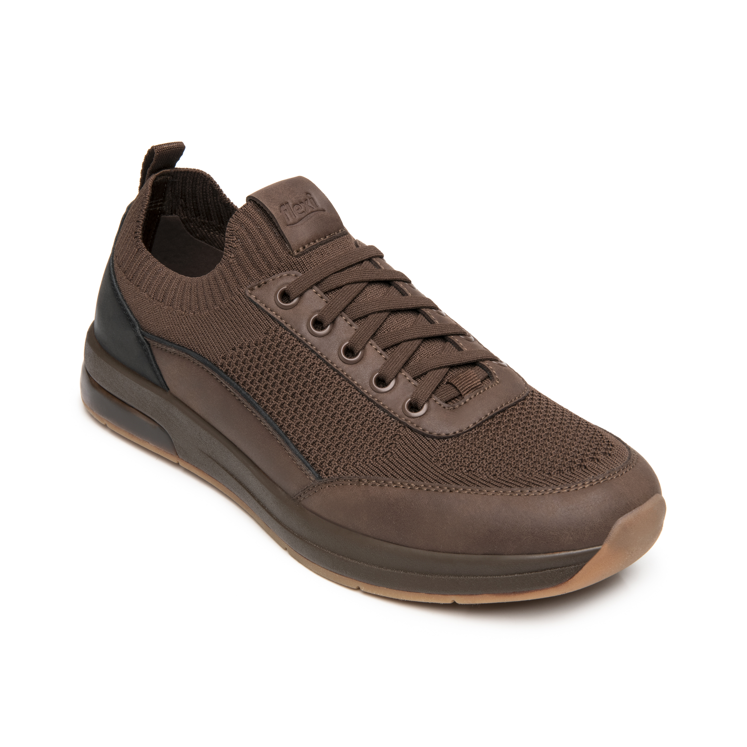 Este modelo Flexi en color café está diseñado para quienes buscan comodidad y estilo en un mismo calzado. Su parte superior combina tejido tipo knit transpirable con refuerzos en materiales sintéticos que aseguran mayor durabilidad y soporte. Incluye agujetas para un ajuste firme y un detalle en el talón en contraste negro que realza su look urbano. La suela ligera de goma es antiderrapante, ideal para brindar seguridad y confort durante el día. Perfecto para acompañar atuendos casuales o relajados, este tenis ofrece versatilidad y confort en cada paso, convirtiéndose en un básico imprescindible.