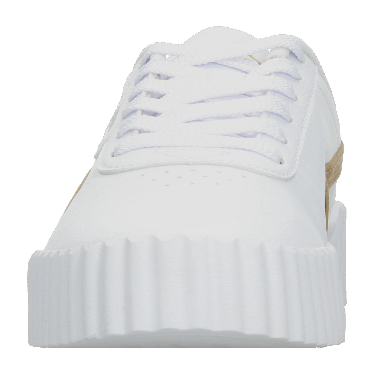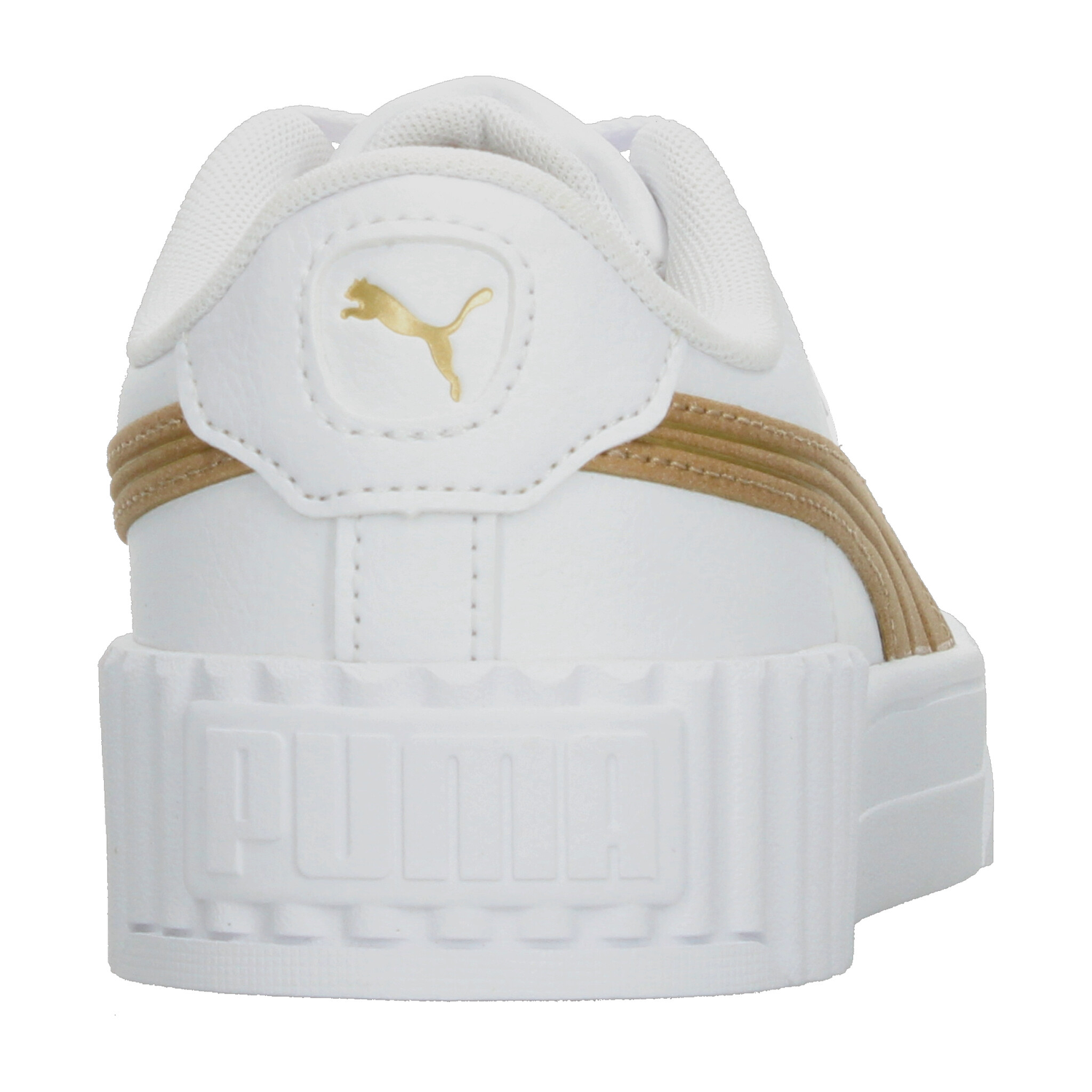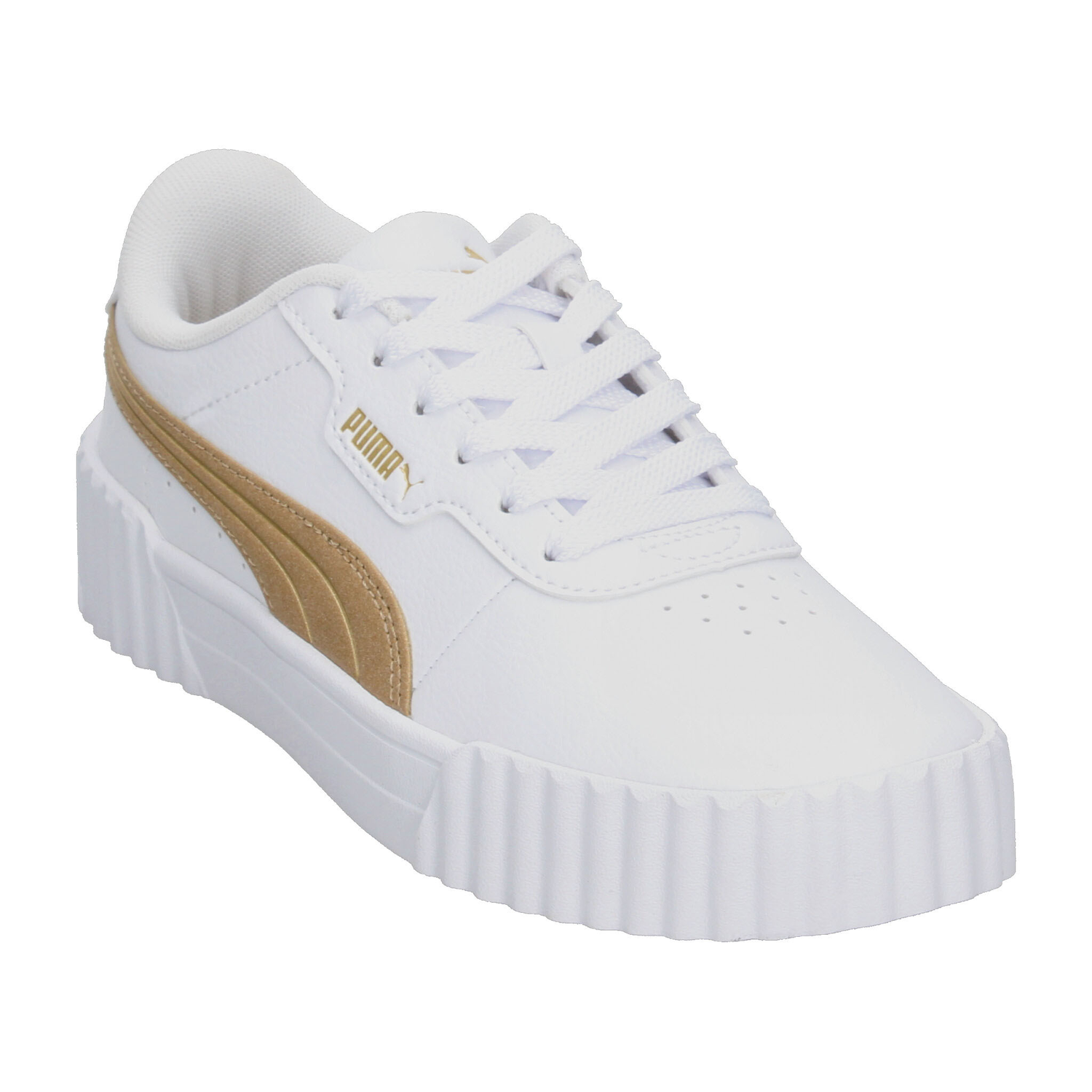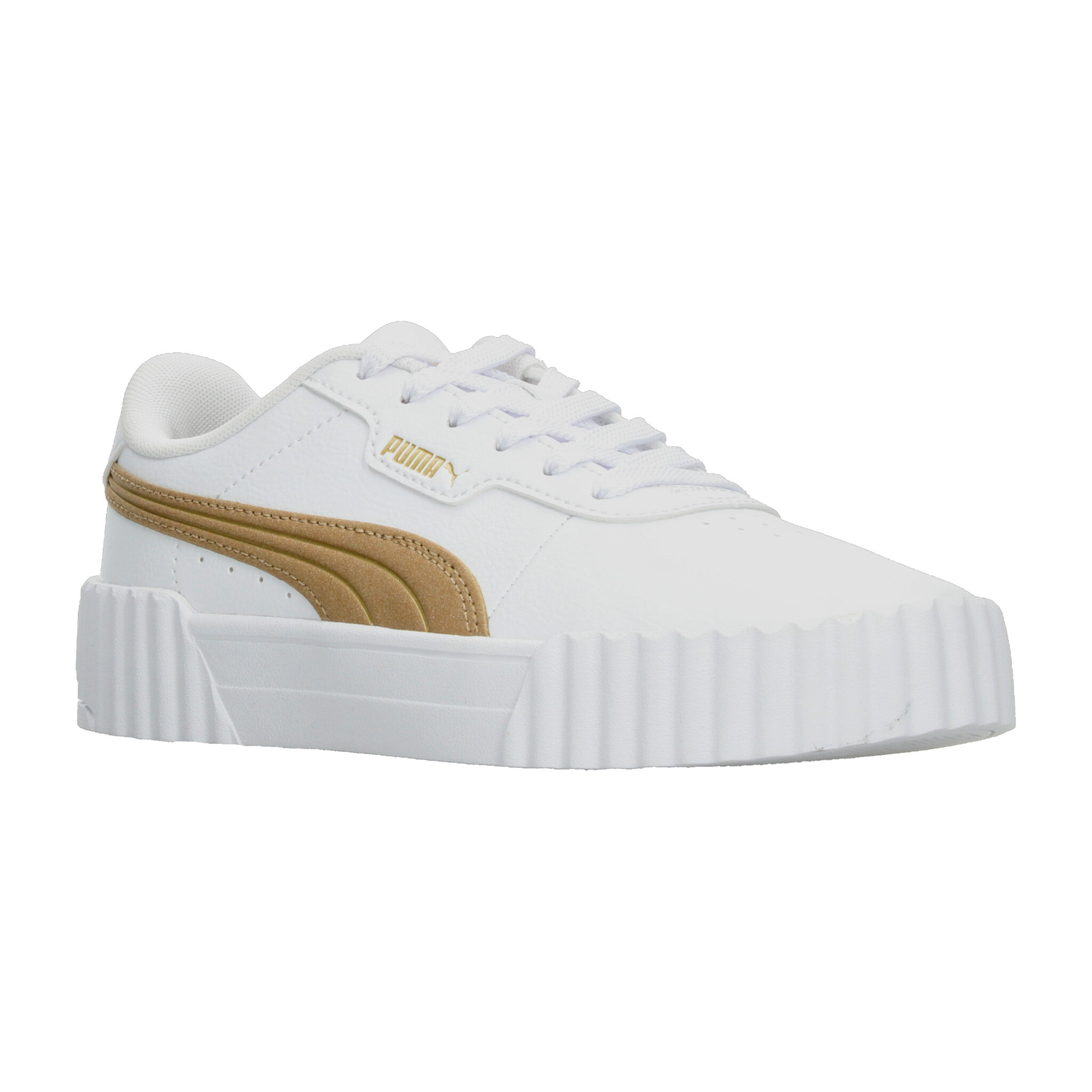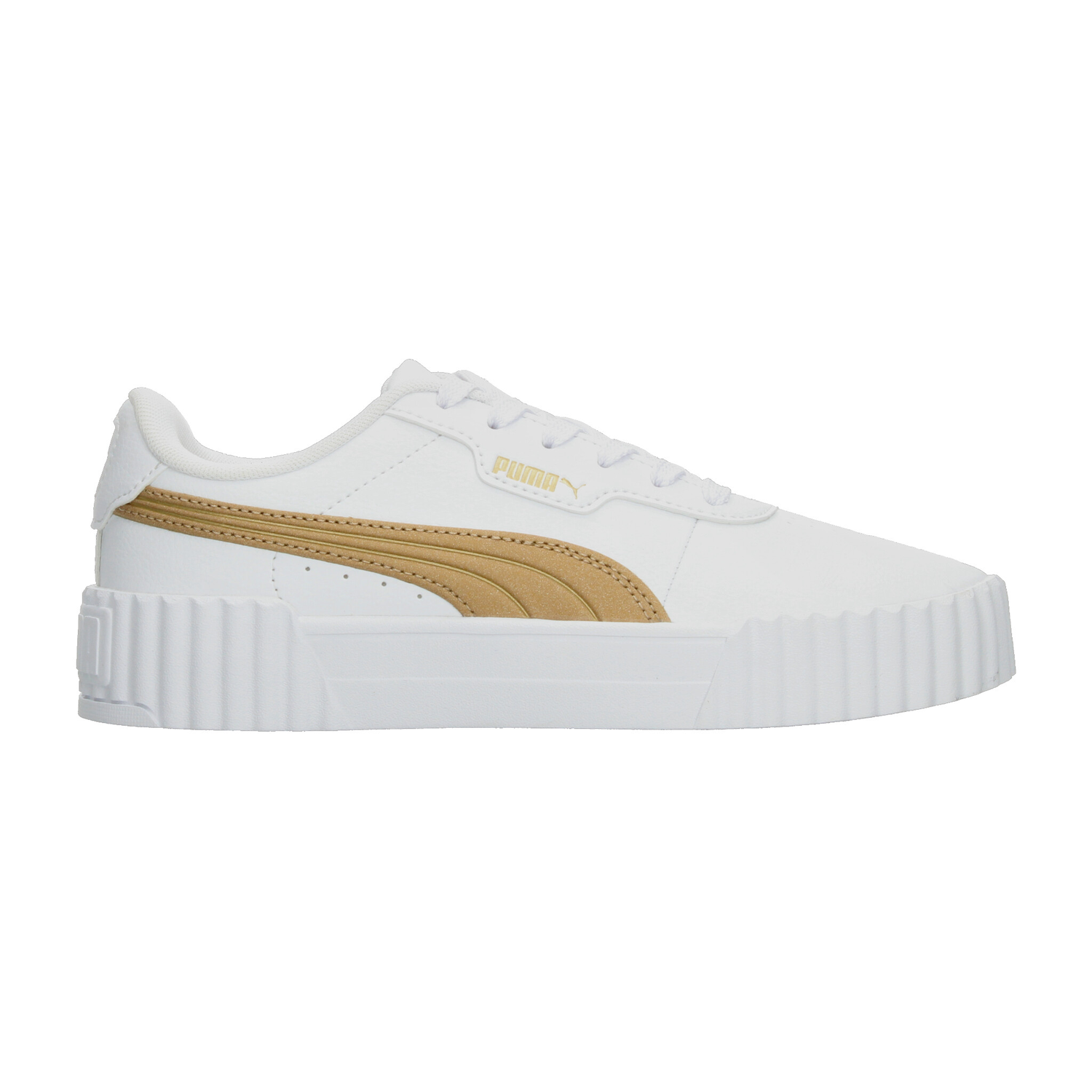 Los tenis Puma Carina 3.0 Aqua Metallics en color blanco para mujer combinan el estilo retro de los años 80 con detalles modernos que te harán destacar. Su franja lateral en tono dorado aporta un toque llamativo y elegante, mientras que la plataforma de 3 cm añade altura con total comodidad. Incorporan la plantilla SOFTFOAM+ con talón extra grueso, diseñada para brindarte una amortiguación suave durante todo el día. Perfectos para lucir con estilo en cualquier ocasión.